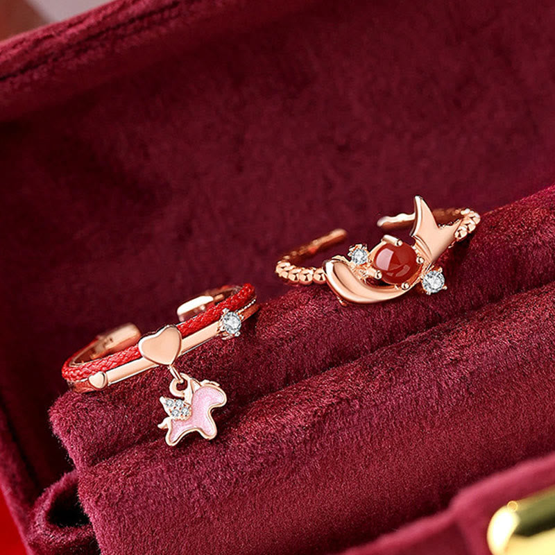 Buddha Stones Red String 925 Sterling Silver Luck Open Ring - Red String 925 Silver Pink Unicorn(Adjustable) - image 0