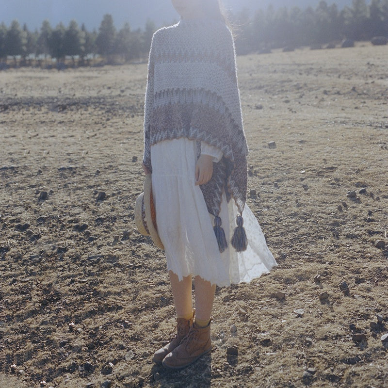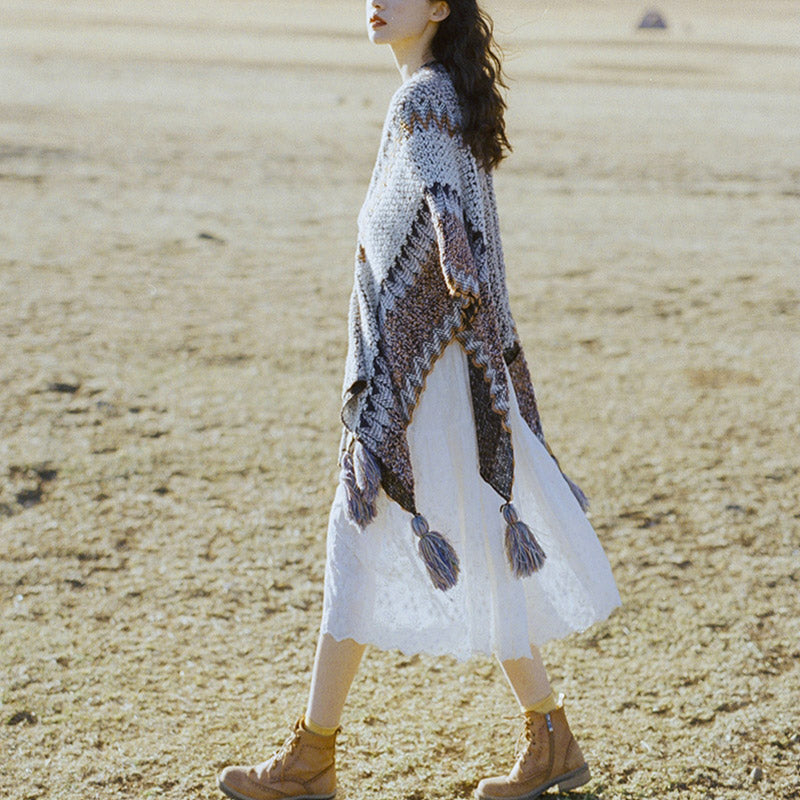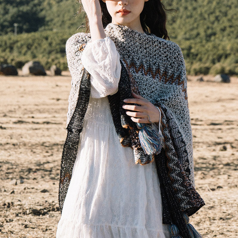 Buddha Stones Tibetan Shawl Gray Brown Striped Knitted Tassels Winter Cozy Travel Scarf Wrap
