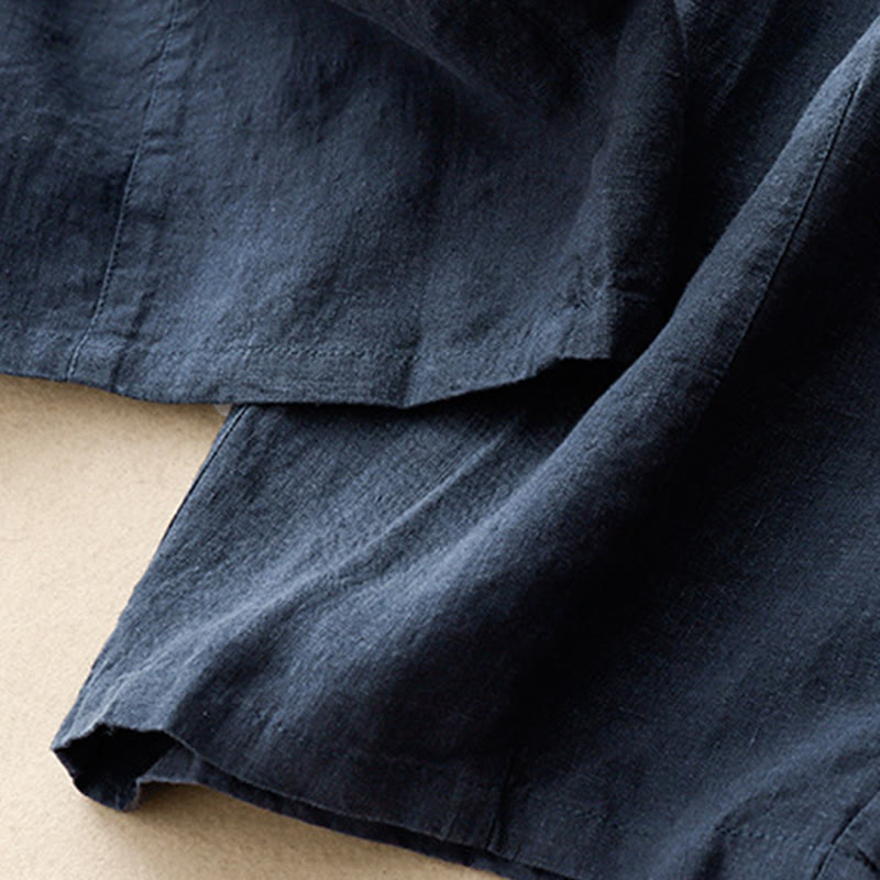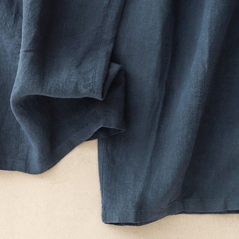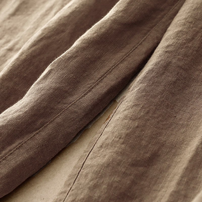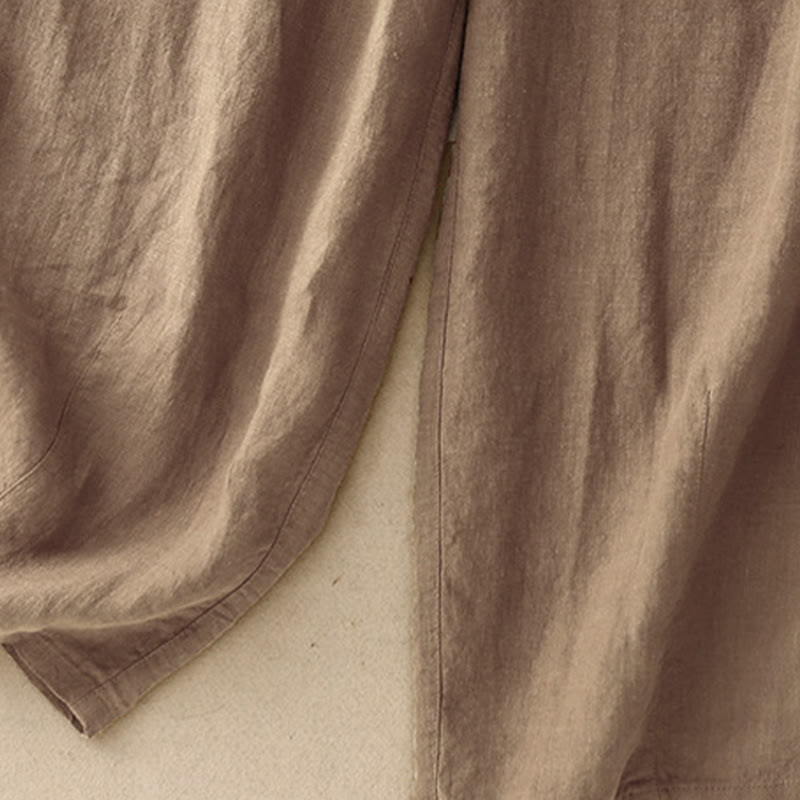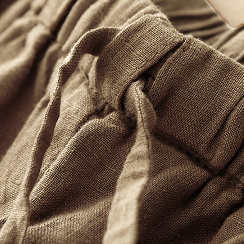 Buddha Stones Summer Plain Casual 7-8 Length Lace-up Women's Cotton Linen Harem Pants With Pockets