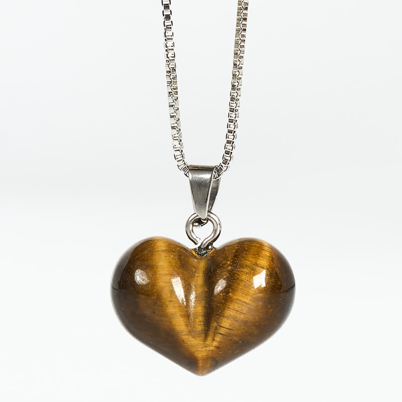 Buddha Stones Heart Design Amethyst Topaz Pink Crystal Opal Tiger Eye White Crystal Red Jasper Amazonite Green Aventurine Black Obsidian Citrine Balance Necklace Pendant - Tiger Eye - image 20