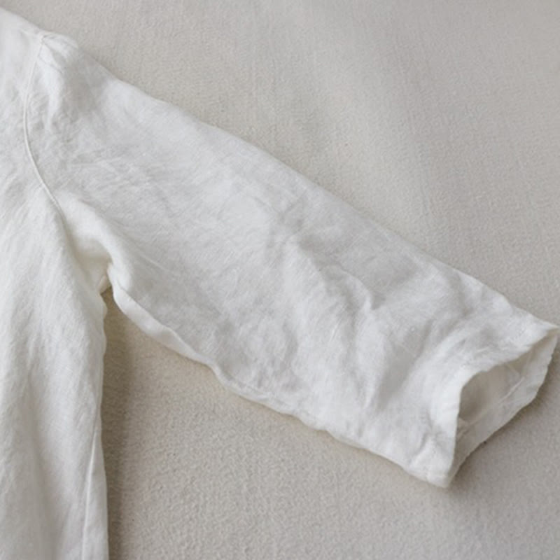 Buddha Stones Buttons Design Lapel Three Quarter Sleeve Cotton Linen Midi Dress With Pockets - White - US8-10,UK/AU12-14,EU40-42 (2XL) - image 6