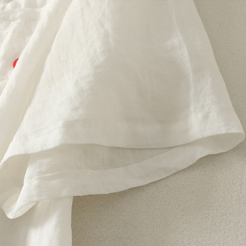 Buddha Stones Casual Embroidery Red Heart Short Sleeve Women's Cotton Linen T-Shirt - White - US14,UK/AU18,EU46 (2XL) - image 3