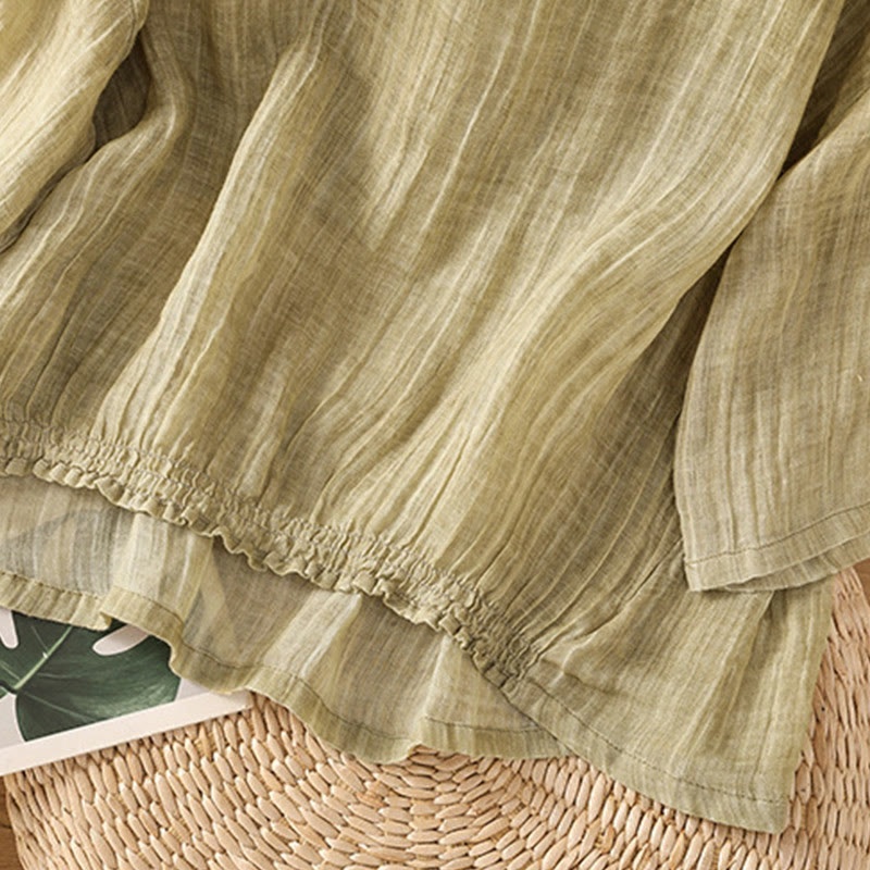 Buddha Stones Casual Summer Plain Crew Neck Women's Cotton Linen Three Quarter Sleeve T-Shirt