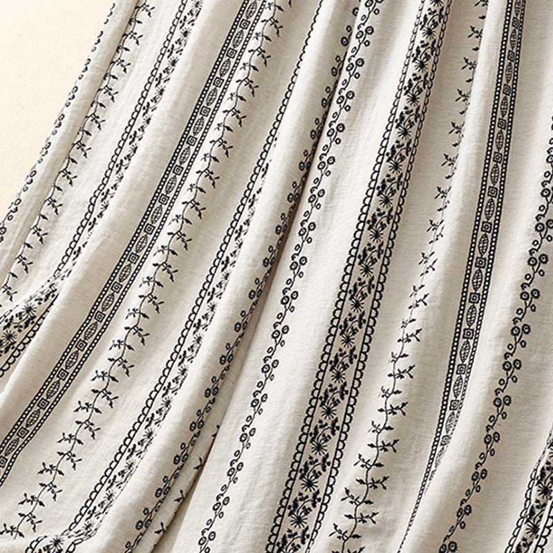 Buddha Stones Casual Vertical Printing Cotton Linen Women's Wide Leg Pants With Pockets - Beige - US8-10,UK/AU12-14,EU40-42 (2XL) - image 5