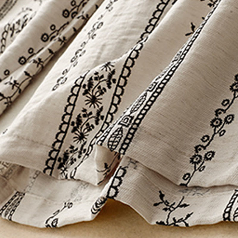 Buddha Stones Casual Vertical Printing Cotton Linen Women's Wide Leg Pants With Pockets