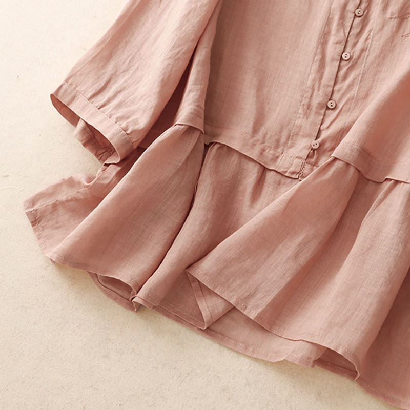 Buddha Stones Embroidered Front Button Design Women's Cotton Three Quarter Sleeve Shirt