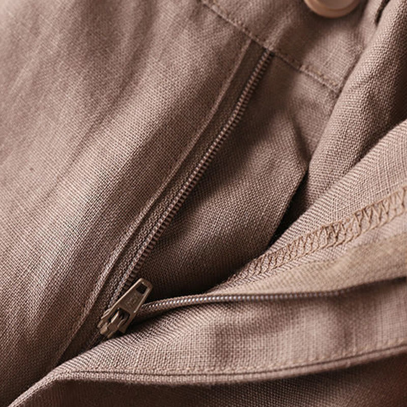 Buddha Stones Plain Color Button Zipper Cotton Women's Shorts With Pockets