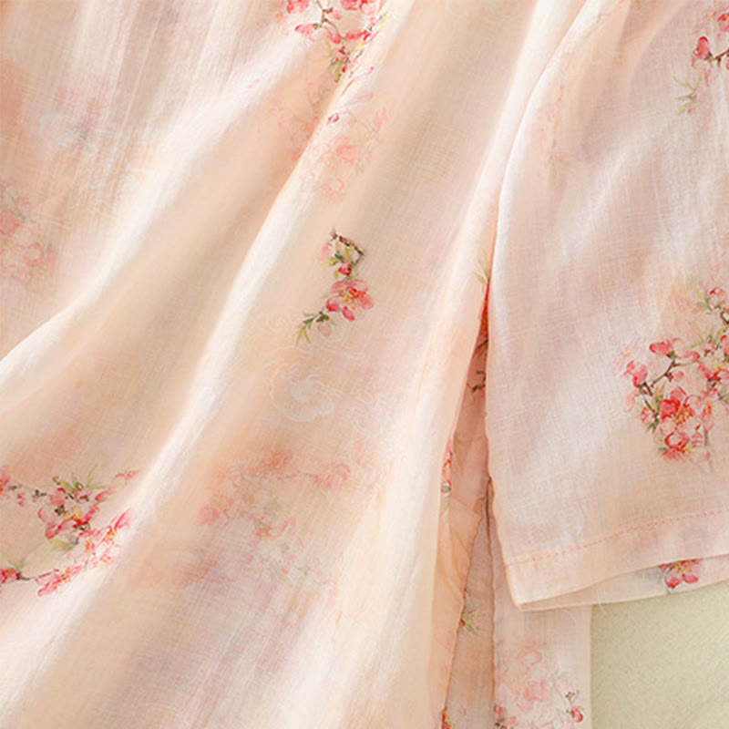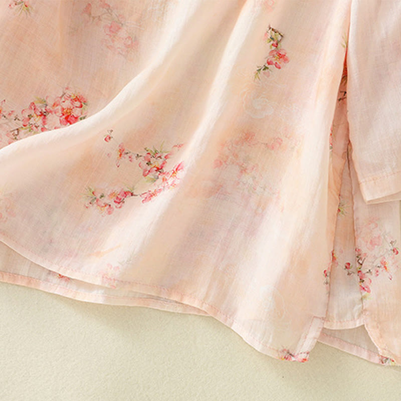 Buddha Stones Plant Printed Crew Neck Frog Button Design Women's Polyester Three Quarter Sleeve Shirt - MistyRose - US8-10,UK/AU12-14,EU40-42 (2XL) - image 8