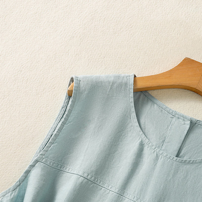 Buddha Stones Simple Crew Neck Button Design Women's Cotton Sleeveless Vest