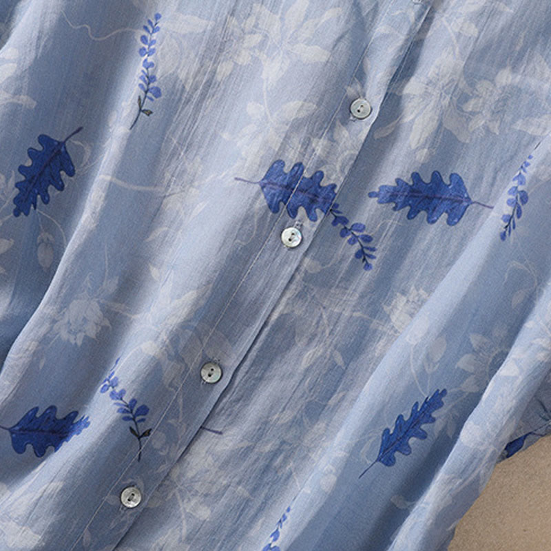 Buddha Stones Small Yellow Flower Leaves Buttons Short Sleeve Women's Shirt - SkyBlue - US8-10,UK/AU12-14,EU40-42 (2XL) - image 9