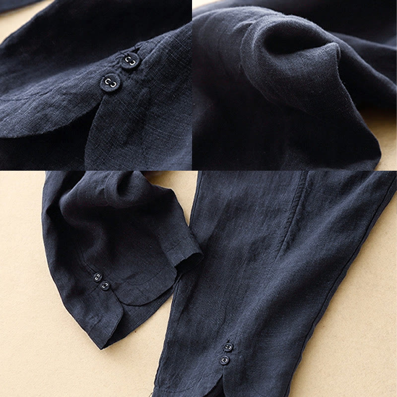 Buddha Stones Summer Solid Color Side Button Design Cotton Linen Women's Harem Pants With Pockets - image 22