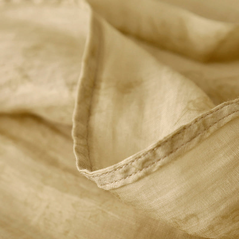 Buddha Stones Summer V-Neck Lace-up Short Sleeve Cotton Linen Women's Midi Dress With Pockets - BurlyWood - US8-10,UK/AU12-14,EU40-42 (2XL) - image 0
