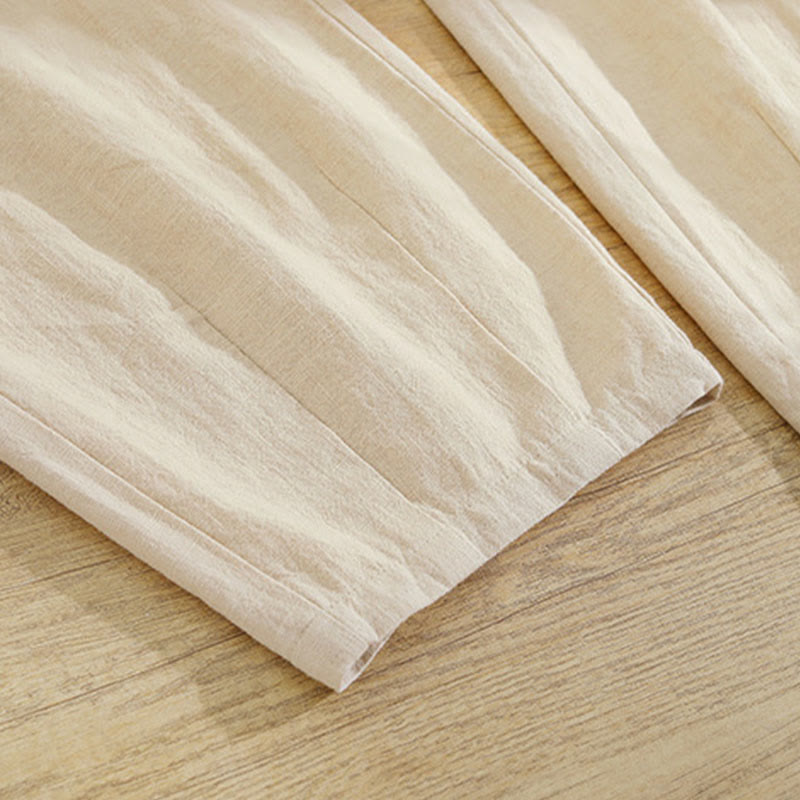 Buddha Stones Women's Casual Vintage Plain Drawstring Carrot Design Cotton Linen Pants With Pockets