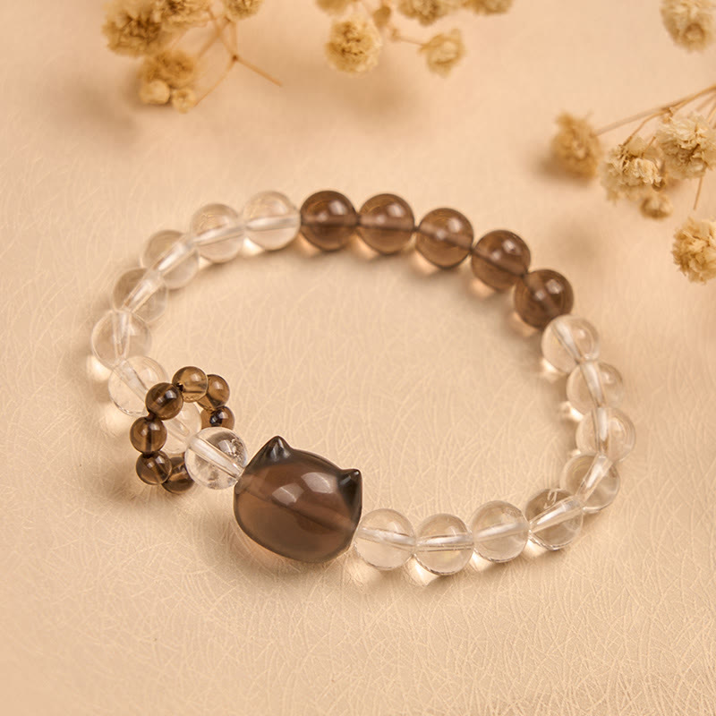 Buddha Stones Japanese Bobtail Cat Natural White Crystal Smoky Quartz Protection Bracelet - Japanese Bobtail Cat(Wrist Circumference: 14-16cm) - image 0