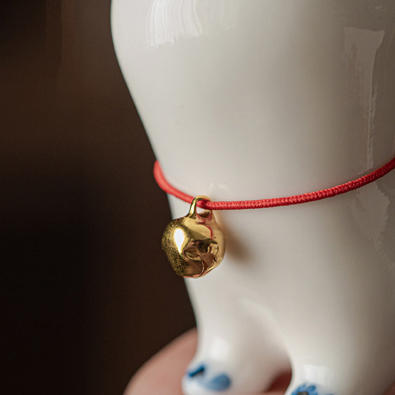 Buddha Stones Mini Lucky White Cat Kitten Tea Pet Ceramic Home Desk Figurine Decoration - White Kitten(Bell Style) 8.9cm*3.7cm*7.6cm - image 1