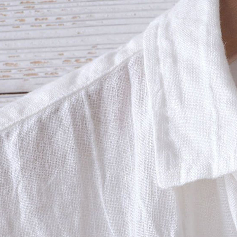 Solid Color Lapel Cotton Linen Shirt offers a blend of comfort and versatility with a button-down front and long sleeves. Made from breathable cotton linen, it ensures a relaxed fit, perfect for fall weather. The crease detail adds a refined touch, while the lapel collar offers a clean, crisp look. Ideal for both casual and semi-casual settings, this shirt provides a timeless, functional wardrobe essential.💕