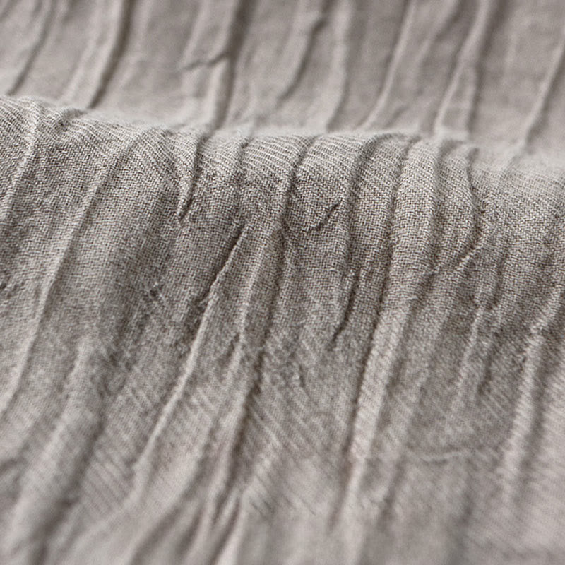 Buddha Stones Solid Long Sleeve Stand Collar Wrinkles Button Down Ramie Linen Men's Shirts
