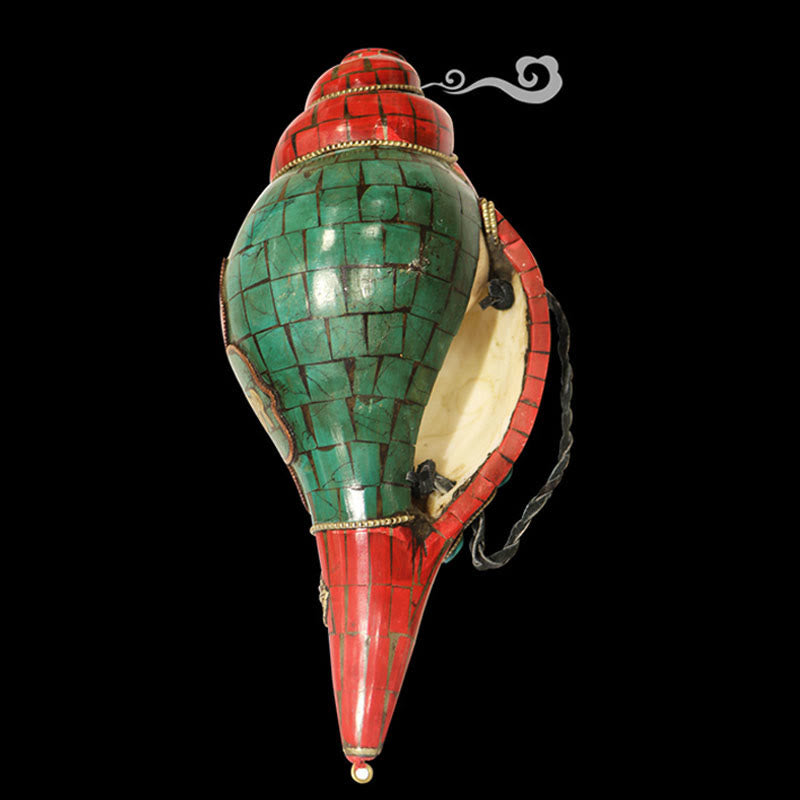 The shankha is one of the eight auspicious symbols of Buddhism, and represents the pervasive sound of Buddhism. It is an auspicious symbol that is believed to be a giver of fame, longevity, prosperity, and good luck while eradicating negativity and purifying the surrounding. The right-turning white conch shell (Tibetan: དུང་གྱས་འཁྱིལ, Wylie: dung gyas 'khyil), represents the elegant, deep, melodious, interpenetrating and pervasive sound of Buddhism. The sound of the shankha symbolises the sacred Om sound.