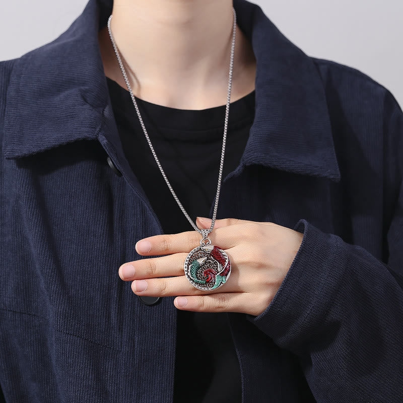 Buddha Stones Tibetan Copper Koi Fish Healing Necklace - Necklace-With Twist Chain(Necklace length: 60cm) - image 2