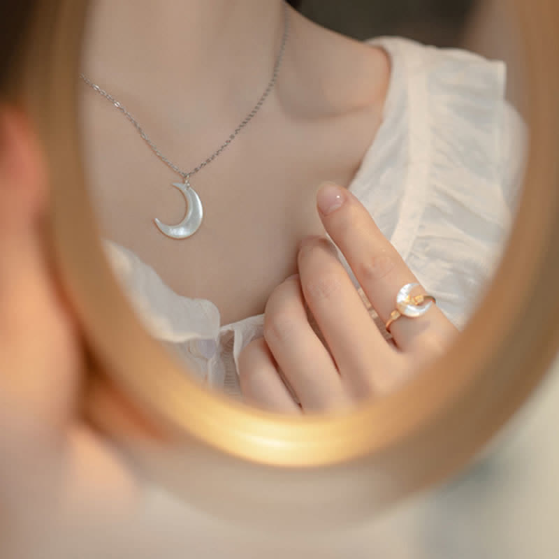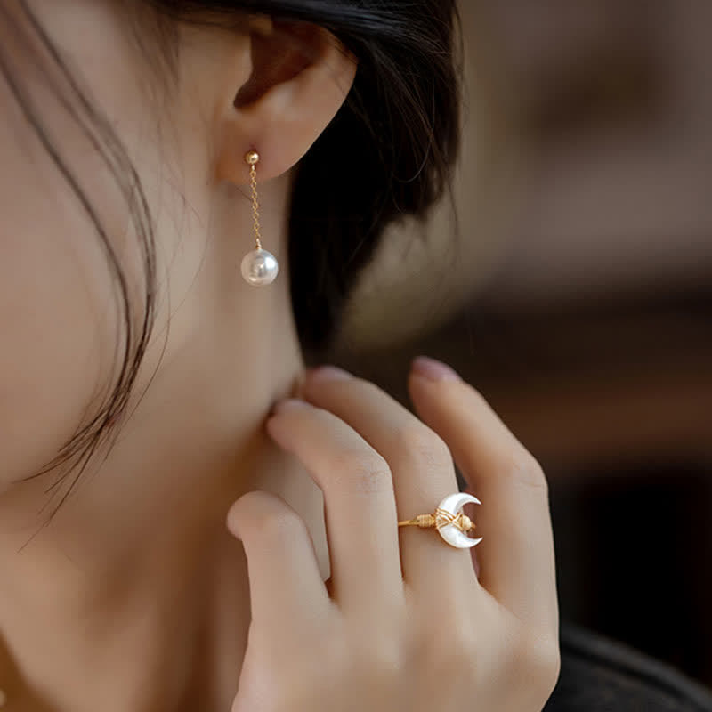Buddha Stones Natural Tridacna Stone Moon 14K Gold Blessing Ring