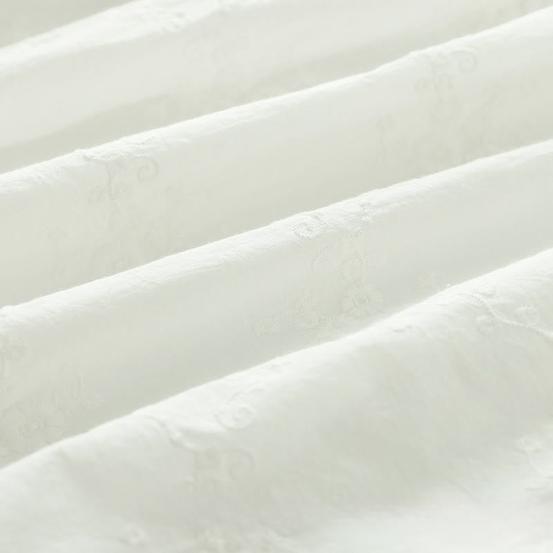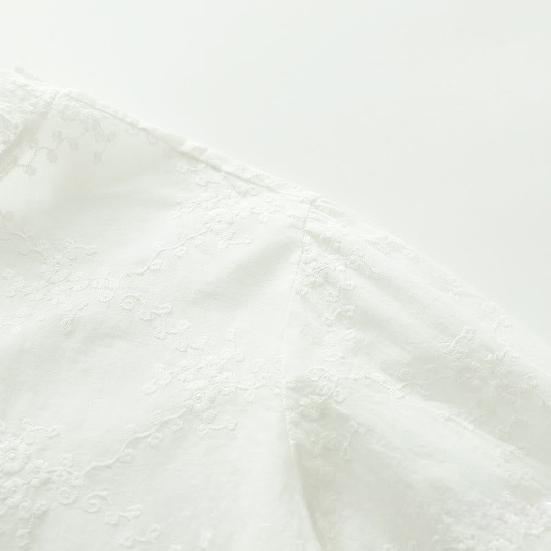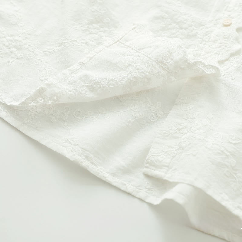 Buddha Stones Fall Ruffled Collar Embroidered Relief Flower Buttons Women's Cotton Long Sleeve Shirt - White - US6,UK/AU10,EU38 (L) - image 2