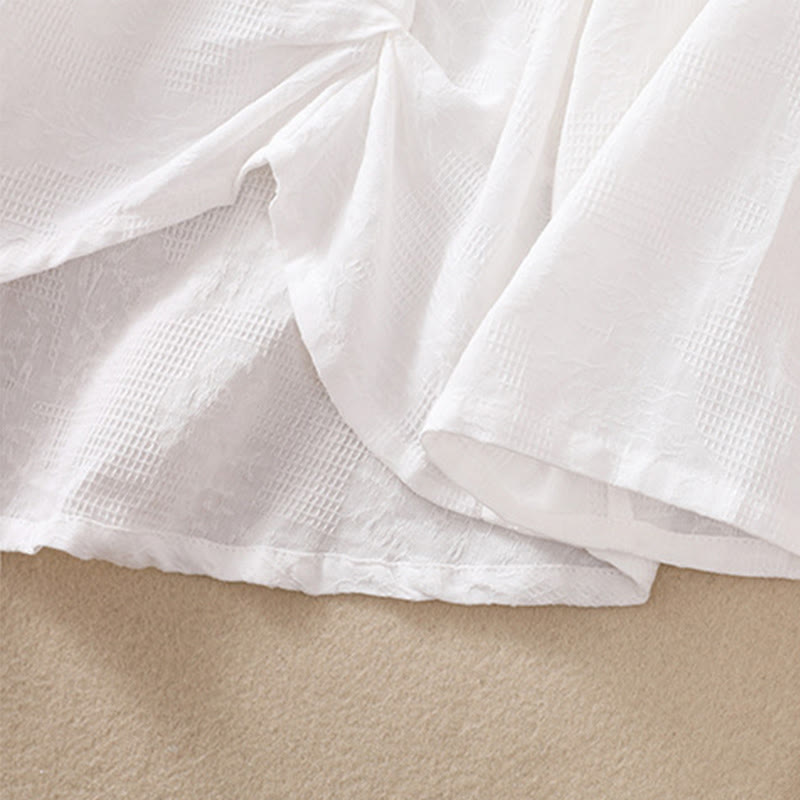 Buddha Stones Jacquard Irregular Hem Pleated Design Women's Cotton Long Sleeve Shirt - White - US8-10,UK/AU12-14,EU40-42 (2XL) - image 8