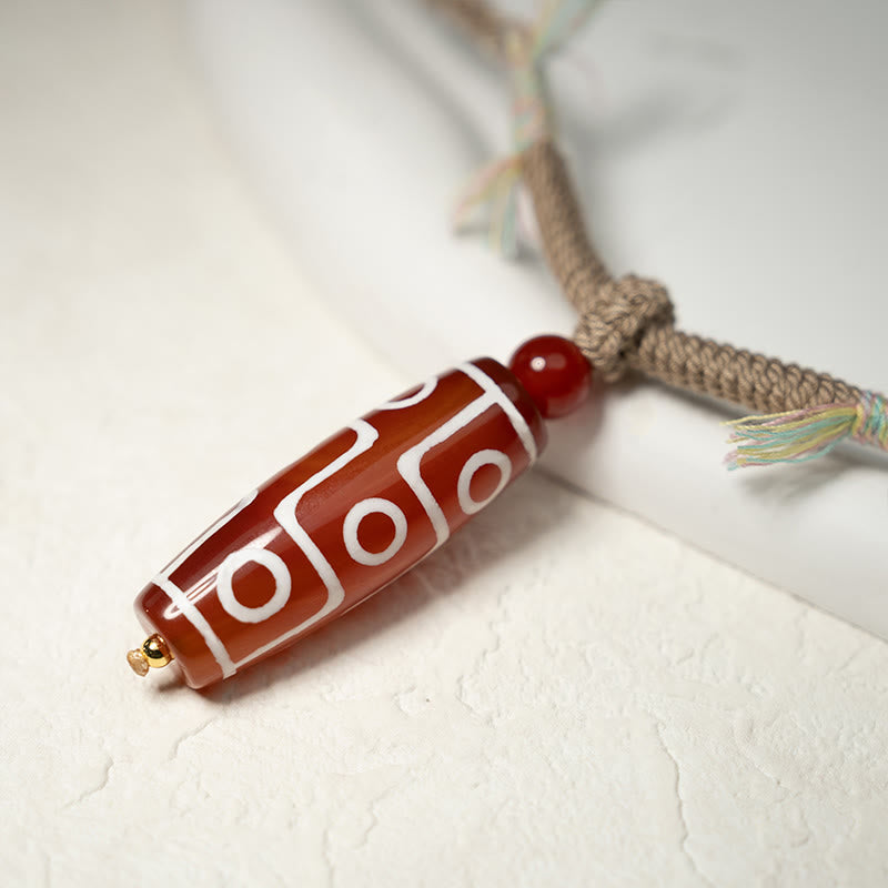 Buddha Stones Natural Red Agate Nine-eye Dzi Bead Power Rope Bracelet - Red Agate Nine-Eye Dzi Bead (Wrist Circumference:15-22cm) - image 1