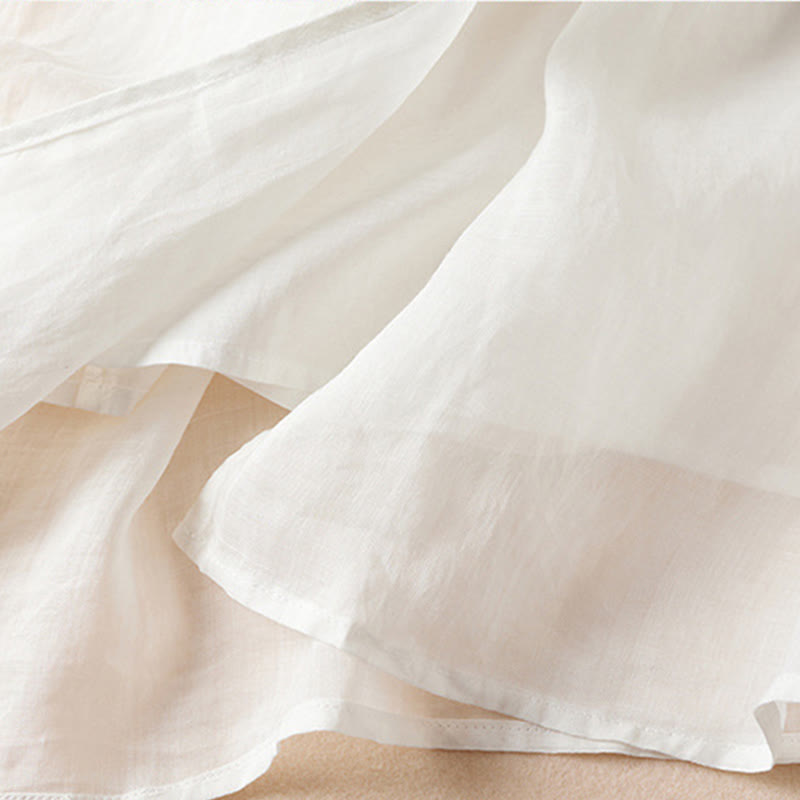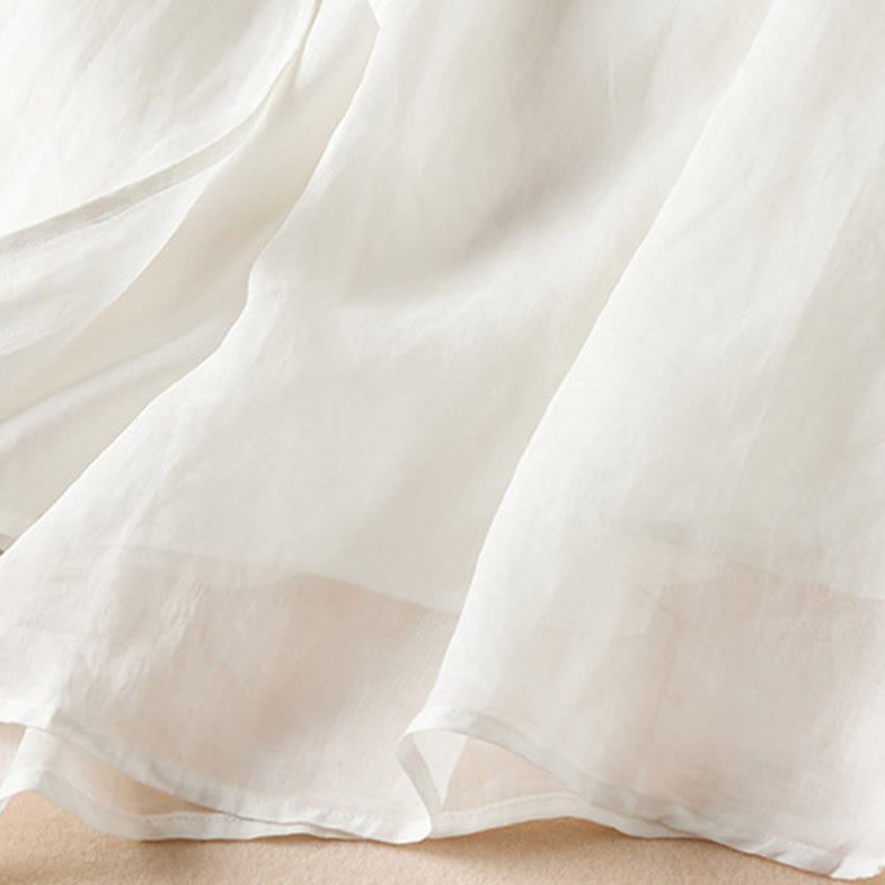 Buddha Stones Embroidered Leaf Crew Neck Half Sleeve Fiber Midi Dress - Snow - US8-10,UK/AU12-14,EU40-42 (2XL) - image 7