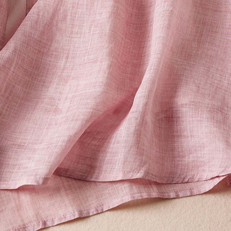 Buddha Stones Embroidered Leaf Crew Neck Half Sleeve Fiber Midi Dress - Pink - US8-10,UK/AU12-14,EU40-42 (2XL) - image 14