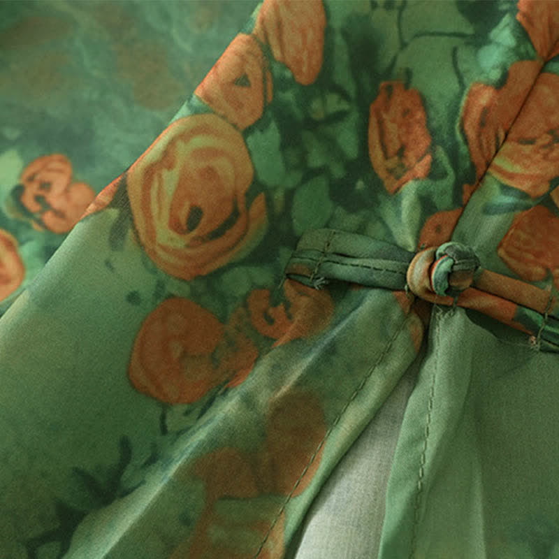 - SIMPLE DESIGN: Mandarin collar with pankou frog-button details and floral print. Loose straight-to-micro-A silhouette, short sleeves, combining vintage oriental elegance with casual sophistication.