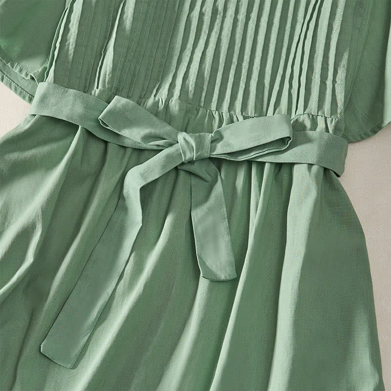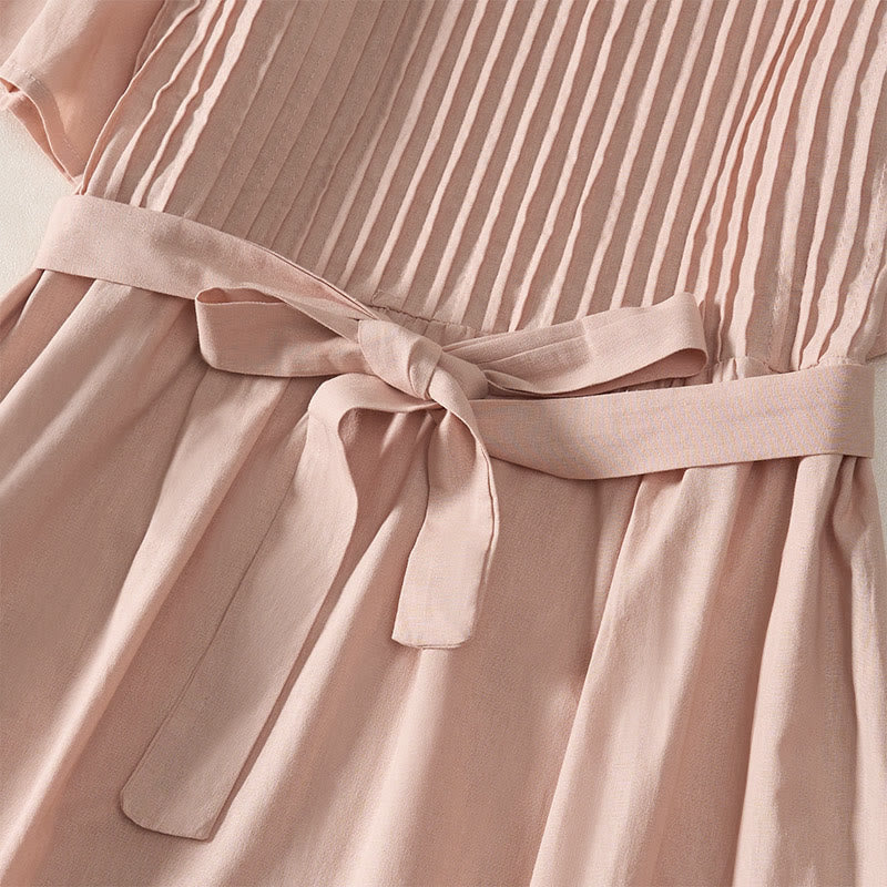 - SIMPLE DESIGN: High-waist A-line cut with pintuck bodice detailing, round neckline, and tie-waist bow. Casual, vintage-inspired, soft and effortlessly feminine.