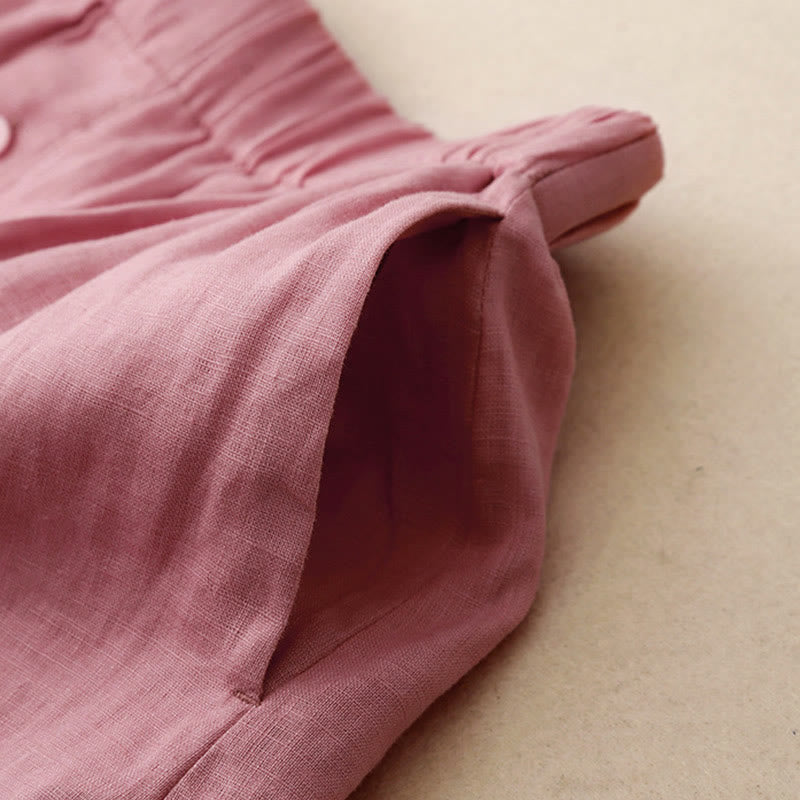 Buddha Stones Summer 2pcs Plain Long Sleeve Shirt Top Shorts Meditation Clothing Women's Set With Pockets