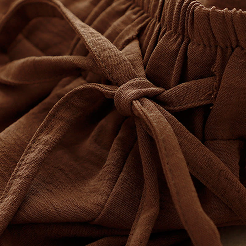 Buddha Stones Causal Ethnic Simple Drawstring Design Women's Wide Leg Cropped Pants With Pockets - SaddleBrown - US8-10,UK/AU12-14,EU40-42 (2XL) - image 0