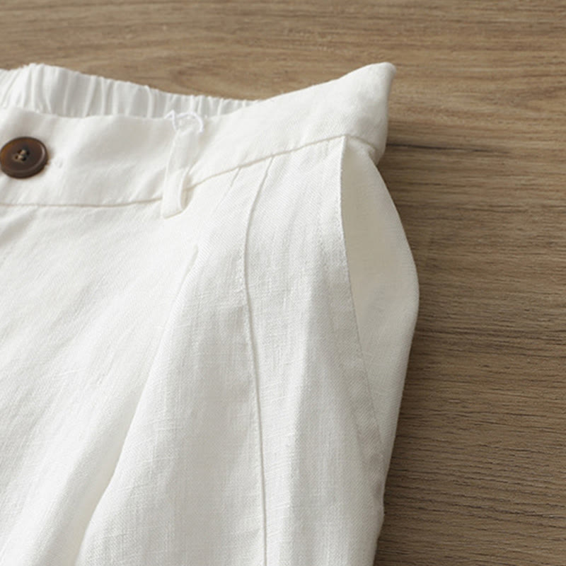 Buddha Stones Solid Color Cotton Women's Button Wide Leg Pants With Pockets