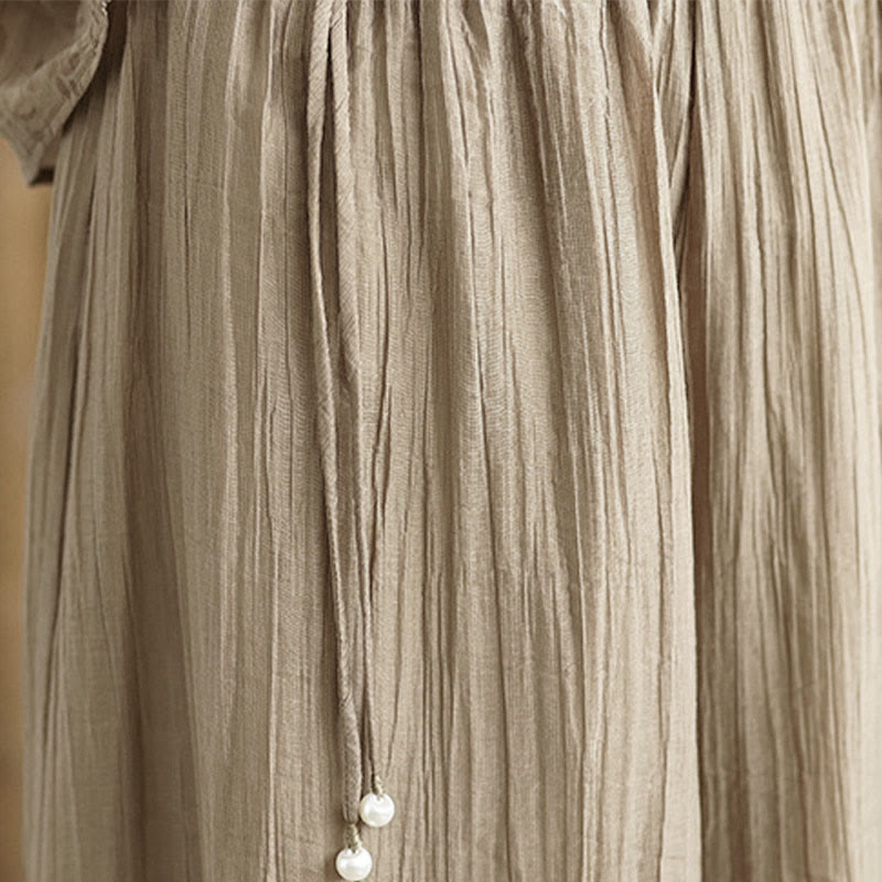 Buddha Stones Solid Color Elastic Waist Design Capri Cropped Women's Wide Leg Pants - Tan - US12,UK/AU16,EU44 (3XL) - image 25