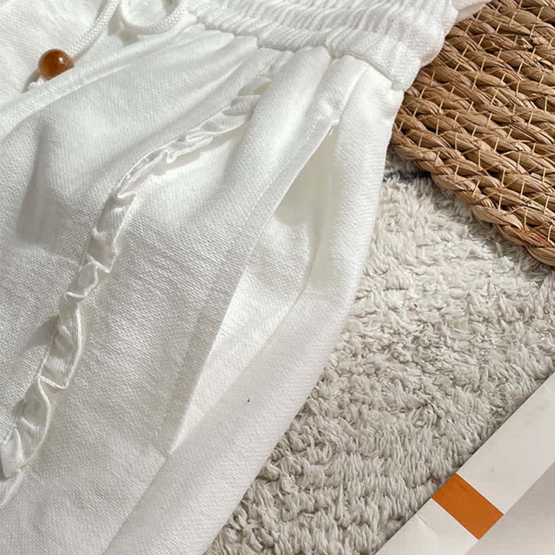 Buddha Stones Summer Drawstring Ruffle Elastic Waist Women's Shorts With Pockets