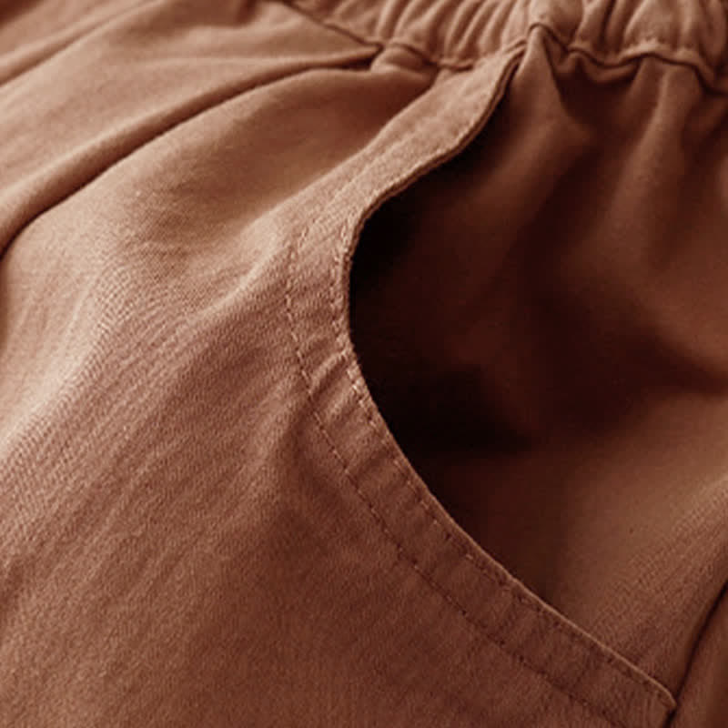 Buddha Stones Summer Cotton Elastic Waist Women's Half Pants With Pockets