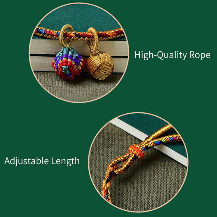 Buddha Stones Colorful Rope Luck Handmade Zongzi Golden Ball Charm Bracelet