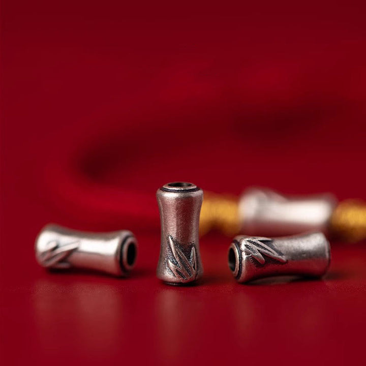 Buddha Stones Handmade 925 Sterling Silver Bamboo Design Red String Luck Braided Bracelet
