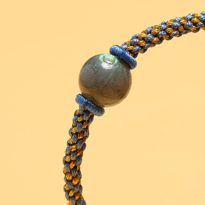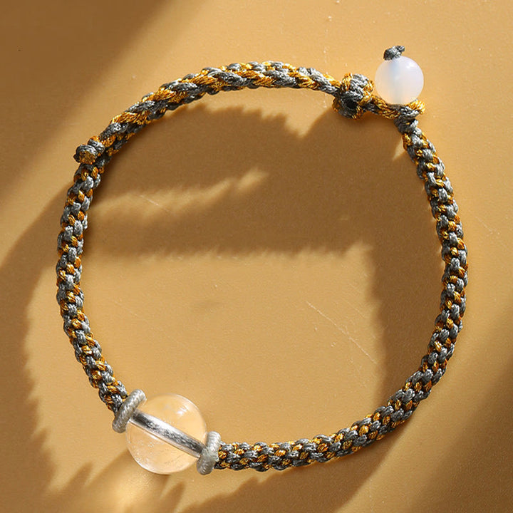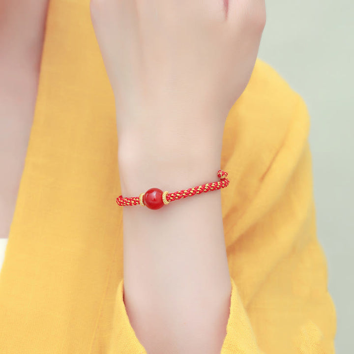 Buddha Stones Handmade Red Agate Amethyst Golden Rutilated Quartz Pink Crystal Bead Calm Braided Bracelet