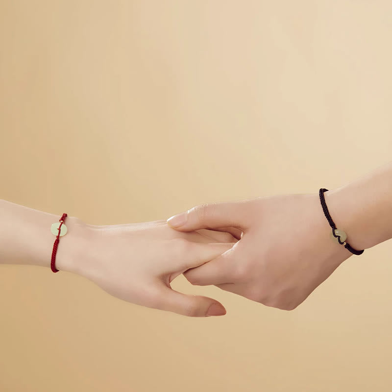 Buddha Stones Natural Hetian Jade Peace Buckle Fu Character Protection Luck Braided Bracelet