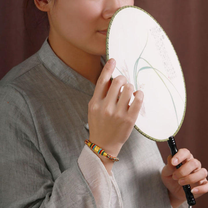 Buddha Stones Tibet 999 Gold Om Mani Padme Hum Handmade Eight Thread Peace Knot Luck Bracelet