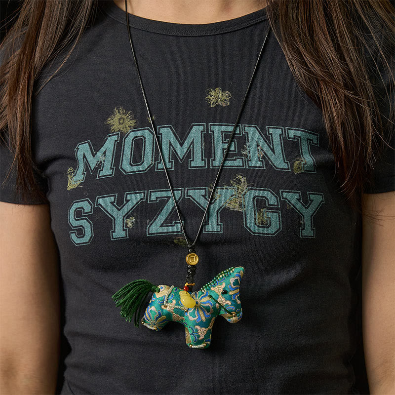 Buddha Stones Year of the Horse Song Brocade Silk Four-sided Treasure Hanging Decoration