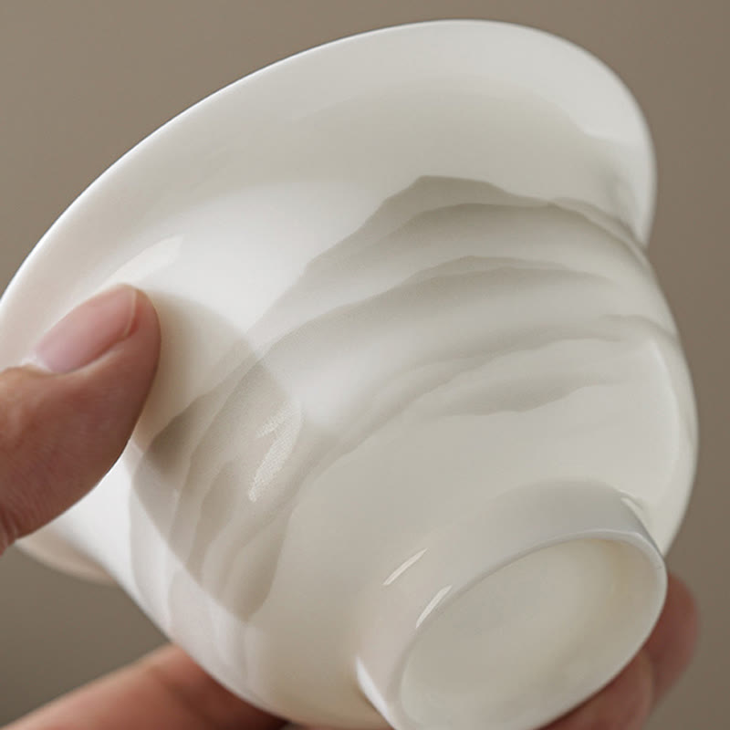 Vintage Ink Painting Mountain White Porcelain Ceramic Gaiwan Sancai Teacup Kung Fu Tea Cup And Saucer With Lid Tea Utensil Teapot